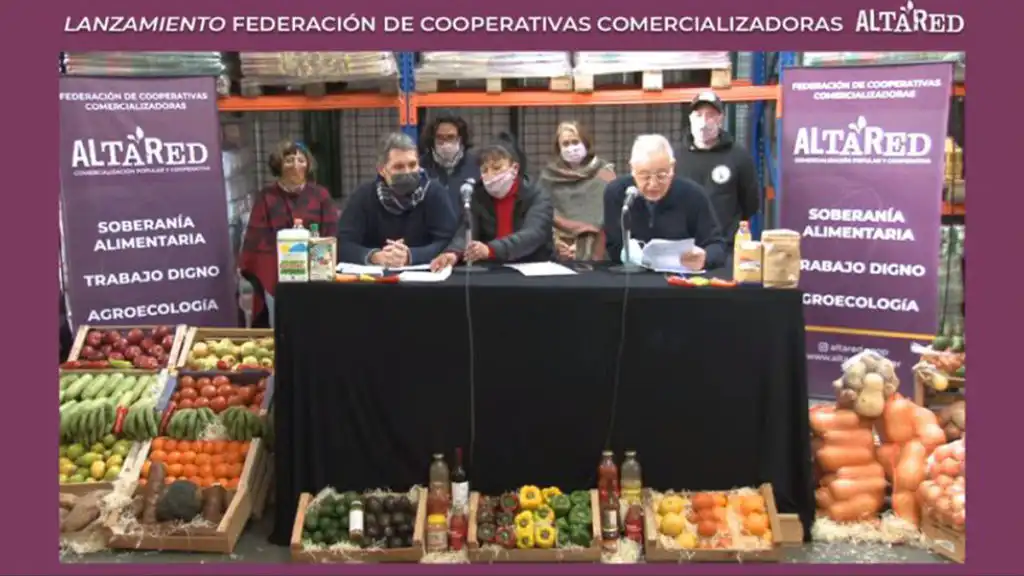 Alta Red, es la primera Federación de Cooperativas Comercializadoras Solidarias del país, presentada públicamente durante esta tarde en el Mercado Central de Buenos Aires. Leidy Ortiz, presidenta de Alta Red e integrante de la Cooperativa Despierta Voces durante la presentación destacó: “Hace mucho tiempo, en 2016, nació la red con pequeñas iniciativas de unas organizaciones que hoy son parte de Alta Red haciendo compras en conjunto en base a algunas problemáticas que teníamos en común”. Las entidades que conforman la Federación de Cooperativas Alta Red son la Cooperativa de Trabajo Nuestra América (Caracoles y Hormigas); las organizaciones Productores a Consumidores; Mercado Territorial, Central Cooperativa, Cooperativa de Trabajo Vínculos Productivos, Proyecto Colsol, Cooperativa de Trabajo Frente Darío Santillán (MECOPO), Cooperativa de Trabajo La Ciudad (Séptimo Varón), Cooperativa Almacoop, Kolmena y Mercado Transformador. Actualmente, la Federación distribuye más de 50 toneladas de alimentos mensuales y se vincula con doce provincias: Misiones, Corrientes, Formosa, Salta, Jujuy, Tucumán, Córdoba, Entre Ríos, Mendoza, Neuquén, Río Negro y Buenos Aires.