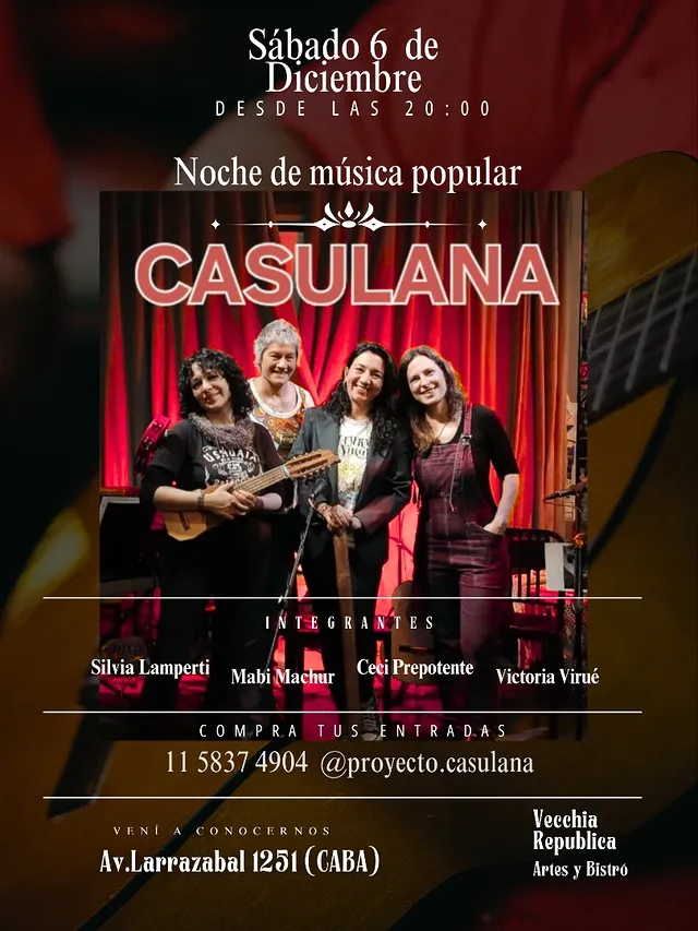 Casulana busca reivindicar y visibilizar el rol de las mujeres en el arte. Integrado por mujeres que se desempeñan en distintos lenguajes estéticos, música, poesía, danza, expresión vocal.